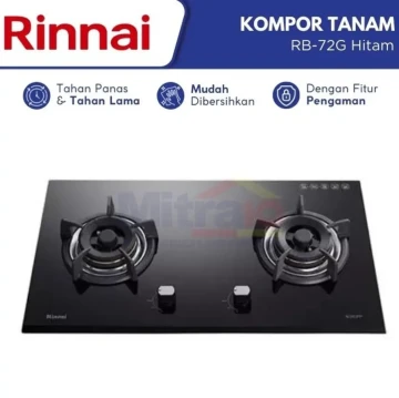Keunggulan Rinnai Kompor Tanam Kaca 2 Tungku RB-72G Hitam :